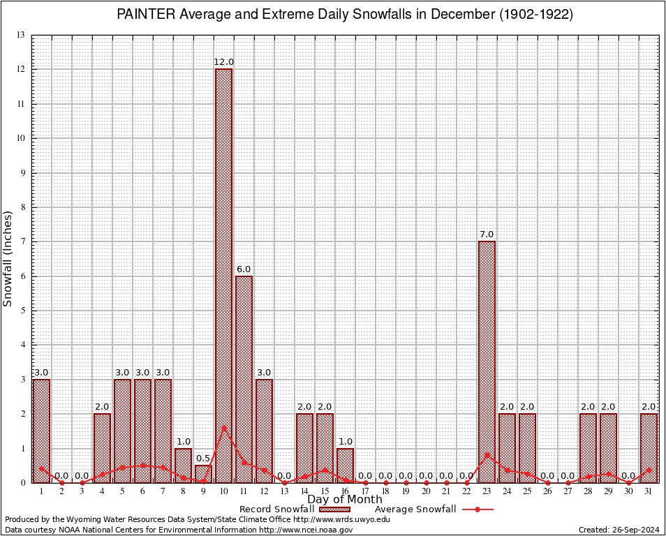 PAINTER (487045) December Average and Extreme Daily Snowfall AMounts (1902-1922) To index page for PAINTER