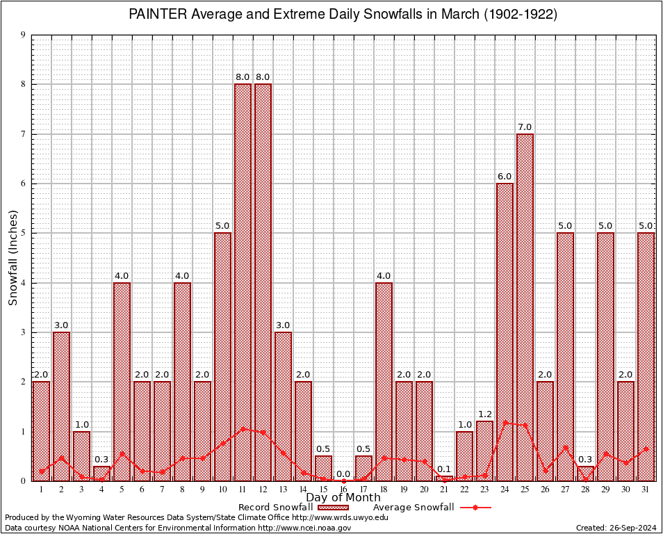 PAINTER (487045) March Average and Extreme Daily Snowfall AMounts (1902-1922) To index page for PAINTER