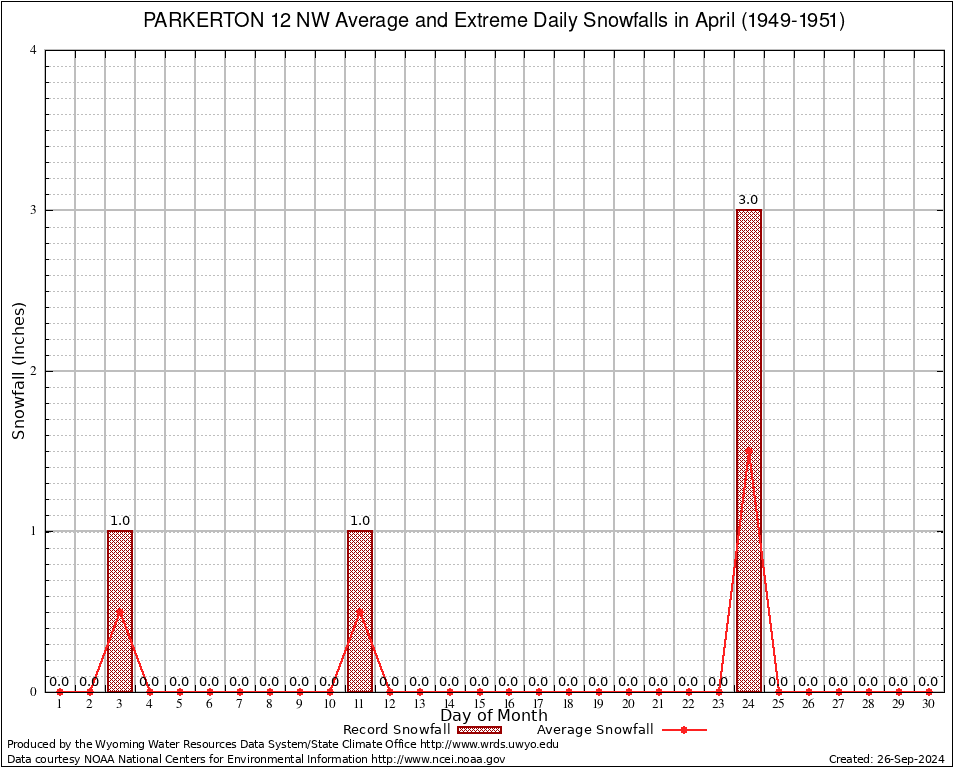 April Average and Extreme Daily Snowfall AMounts (1949-1951)