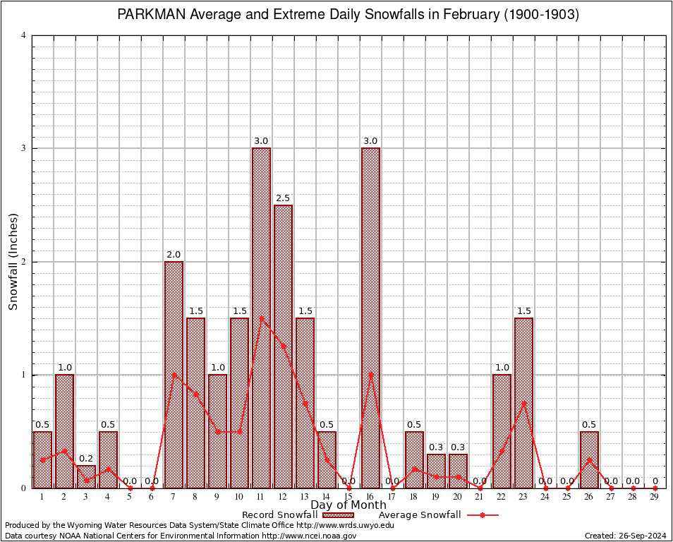 PARKMAN (487078) February Average and Extreme Daily Snowfall AMounts (1900-1903) To index page for PARKMAN