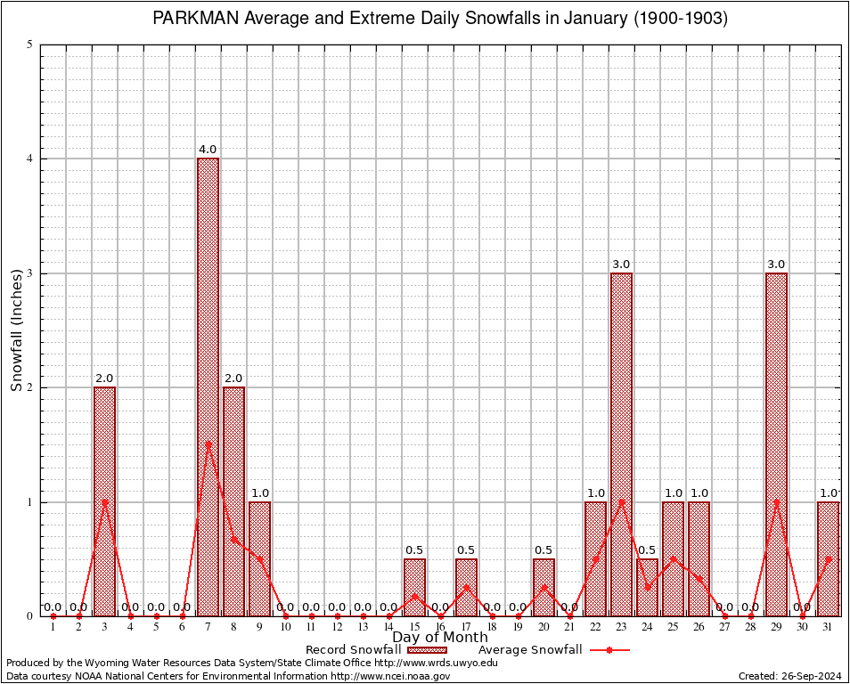 PARKMAN (487078) January Average and Extreme Daily Snowfall AMounts (1900-1903) To index page for PARKMAN