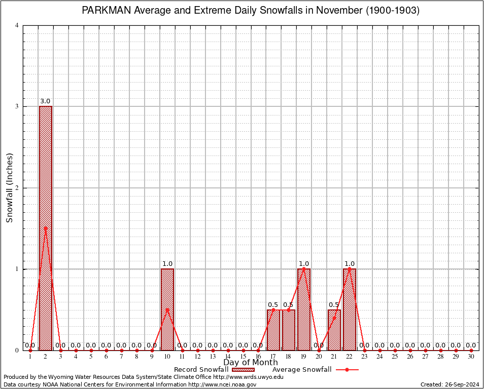 PARKMAN (487078) November Average and Extreme Daily Snowfall AMounts (1900-1903) To index page for PARKMAN
