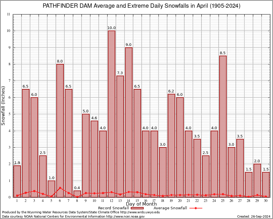 April Average and Extreme Daily Snowfall AMounts (1905-2024)