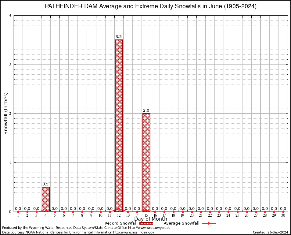 June Average and Extreme Daily Snowfall AMounts (1905-2024)