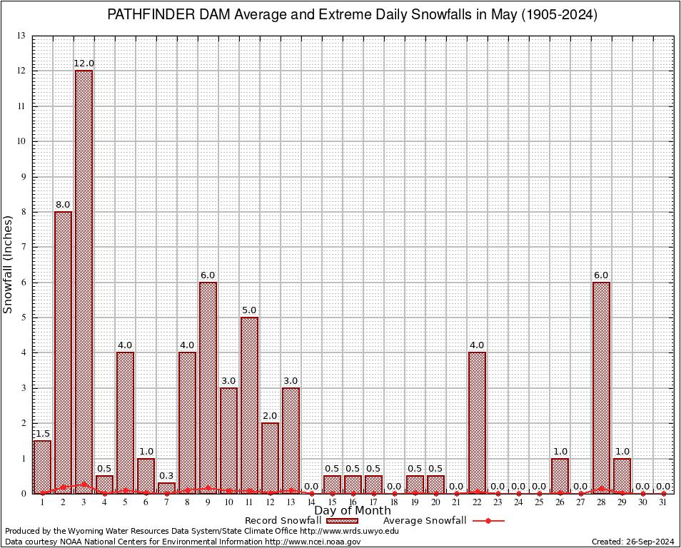May Average and Extreme Daily Snowfall AMounts (1905-2024)