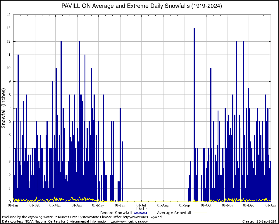 PAVILLION (487115) Annual Average and Extreme Daily Snowfall AMounts (1919-2024) To index page for PAVILLION