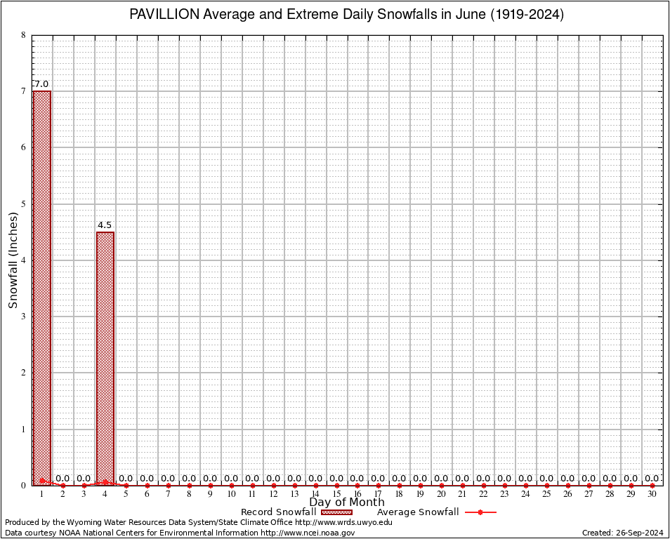 June Average and Extreme Daily Snowfall AMounts (1919-2024)