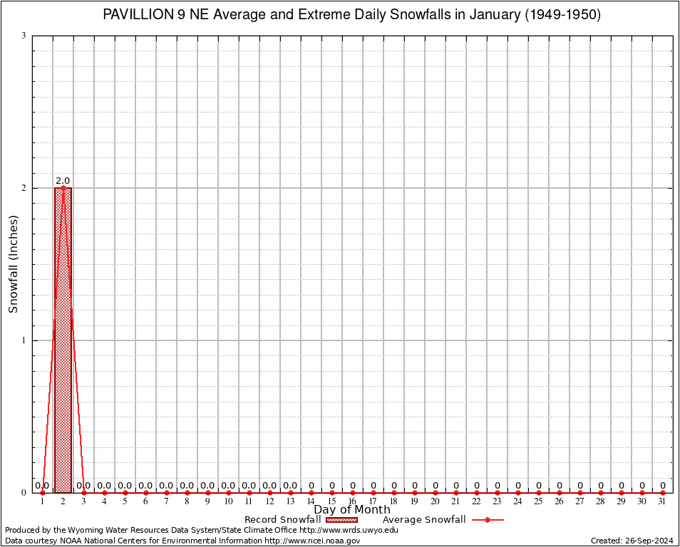January Average and Extreme Daily Snowfall AMounts (1949-1950)