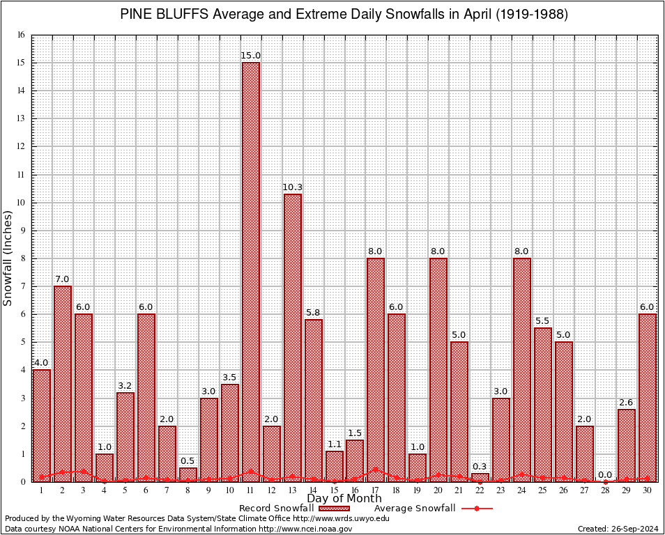 April Average and Extreme Daily Snowfall AMounts (1919-1988)