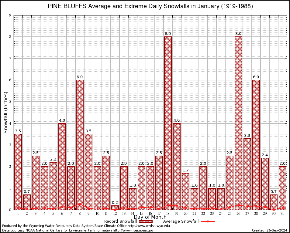 January Average and Extreme Daily Snowfall AMounts (1919-1988)
