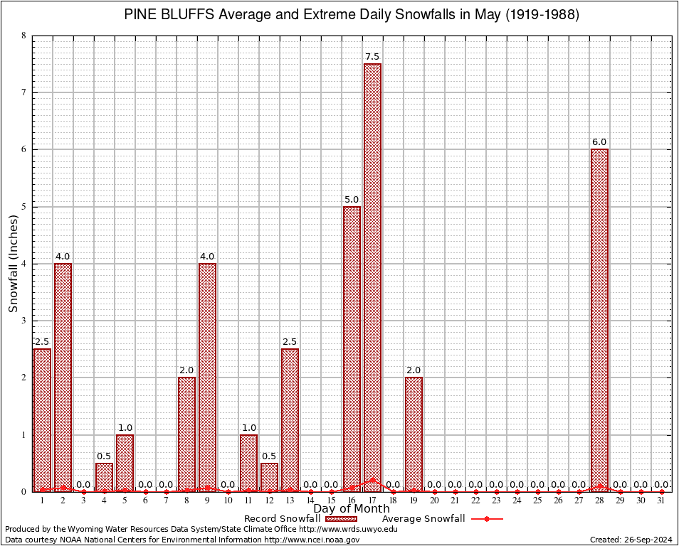 May Average and Extreme Daily Snowfall AMounts (1919-1988)