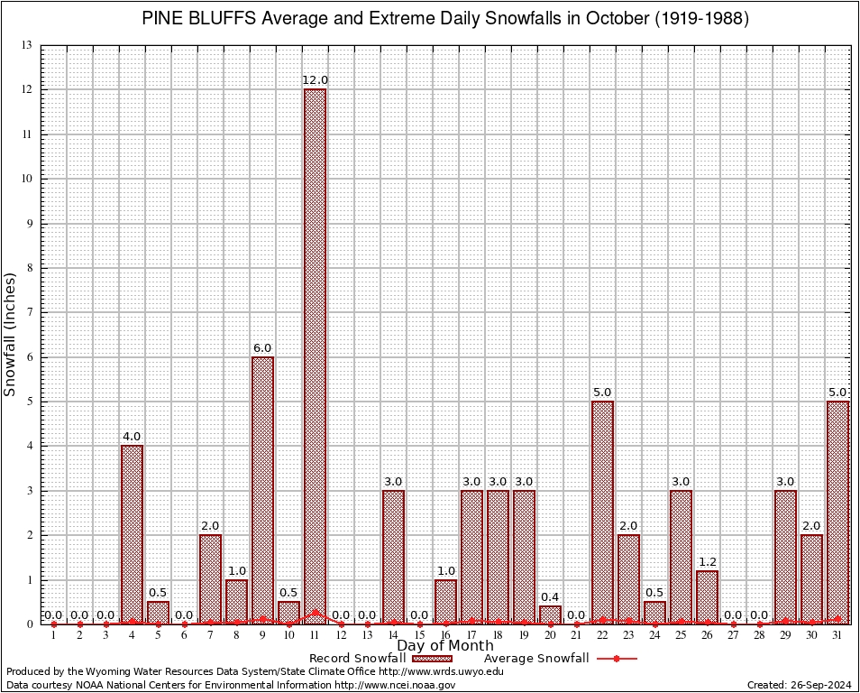 October Average and Extreme Daily Snowfall AMounts (1919-1988)