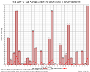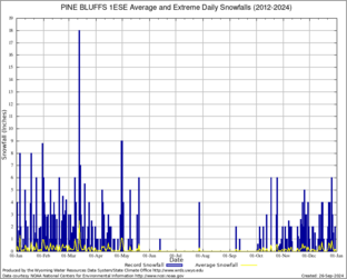 Record Extreme and Average Daily Snowfall (2012-2024)