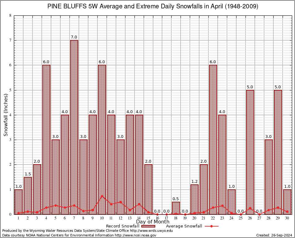 April Average and Extreme Daily Snowfall AMounts (1948-2009)