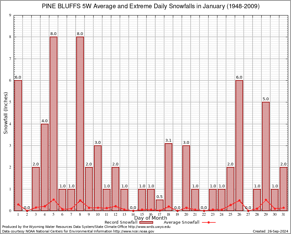 January Average and Extreme Daily Snowfall AMounts (1948-2009)
