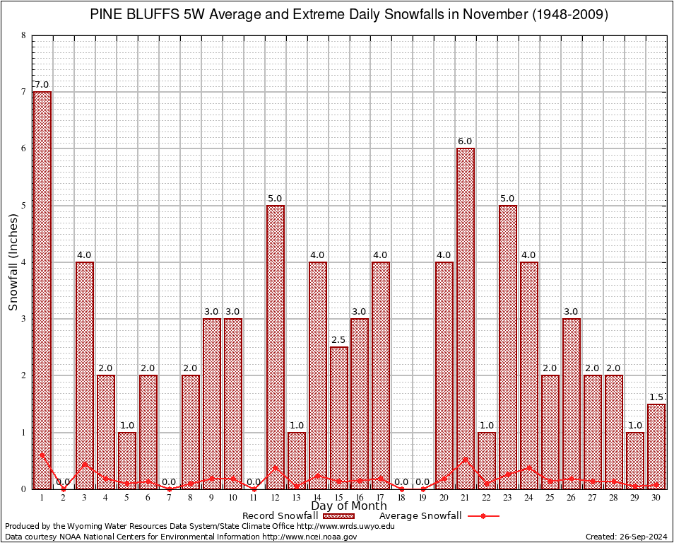 November Average and Extreme Daily Snowfall AMounts (1948-2009)