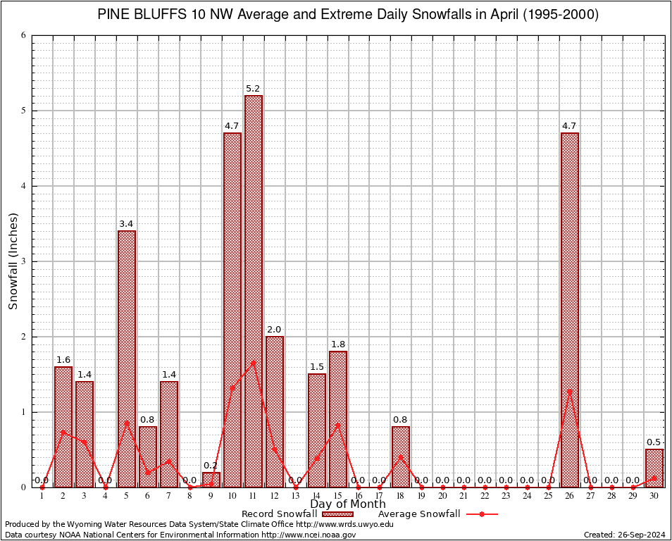 April Average and Extreme Daily Snowfall AMounts (1995-2000)