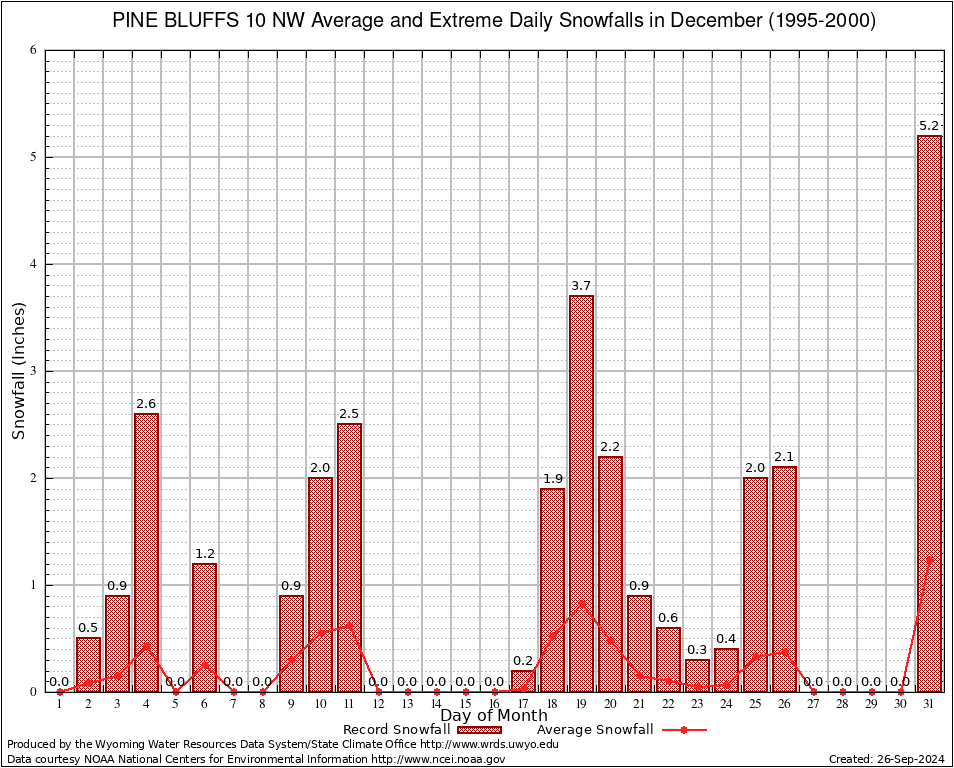 December Average and Extreme Daily Snowfall AMounts (1995-2000)
