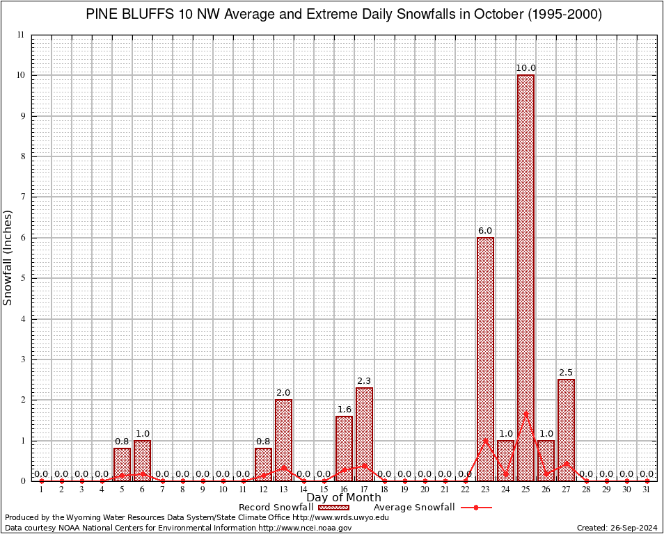 October Average and Extreme Daily Snowfall AMounts (1995-2000)