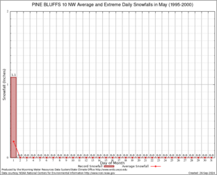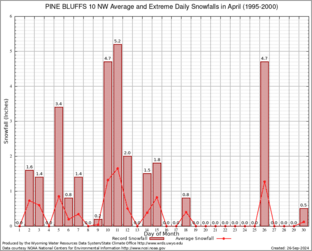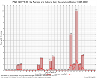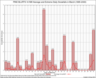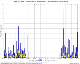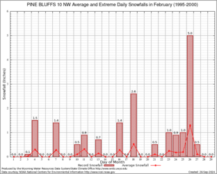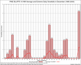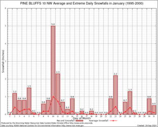 PINE BLUFFS 10 NW (487248) Record Extreme and Average Daily Snowfall (1995-2000) See Here for Other Stations