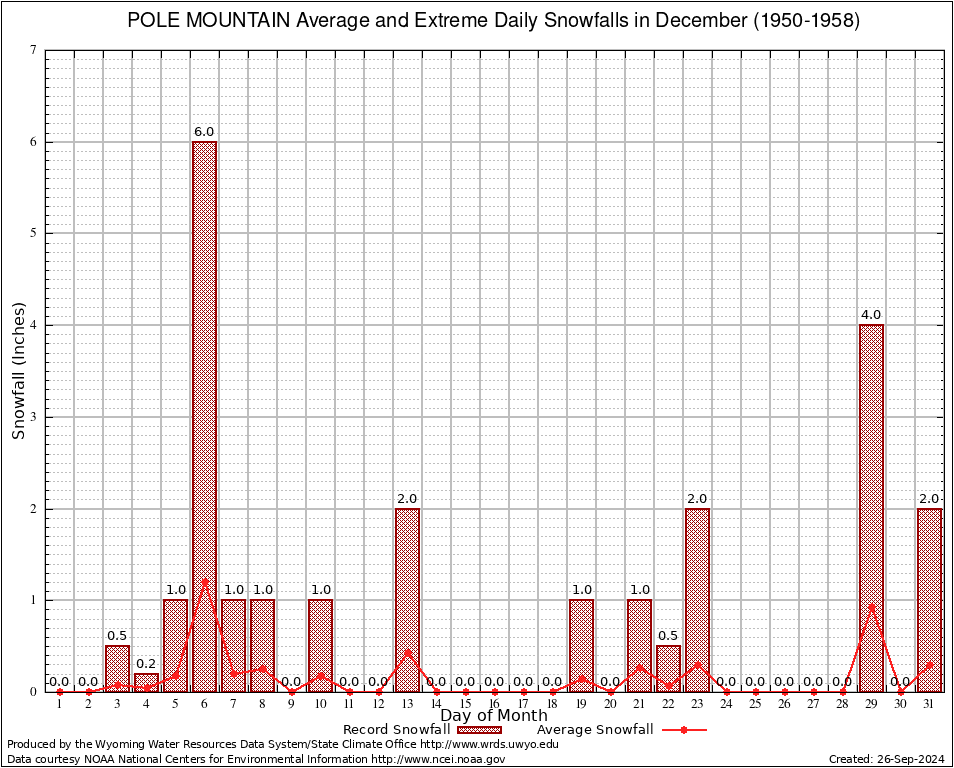 December Average and Extreme Daily Snowfall AMounts (1950-1958)