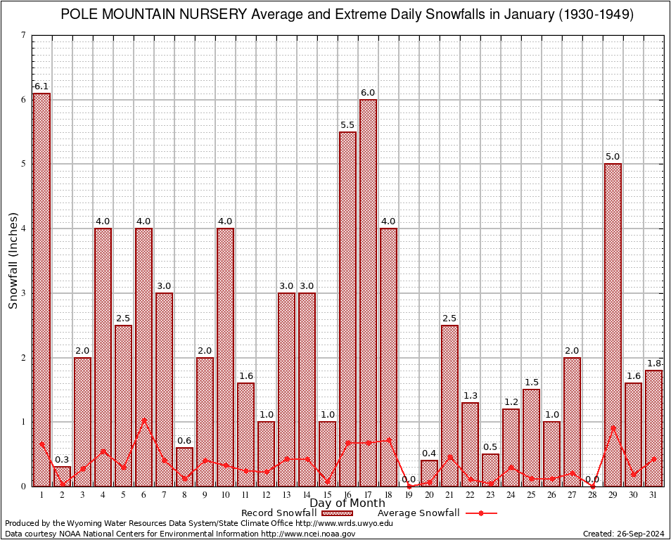 January Average and Extreme Daily Snowfall AMounts (1930-1949)