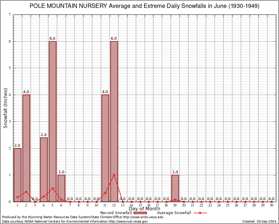 June Average and Extreme Daily Snowfall AMounts (1930-1949)