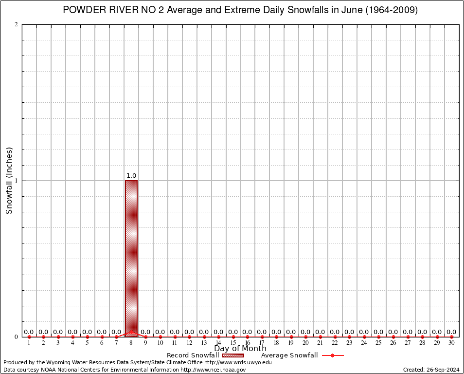 June Average and Extreme Daily Snowfall AMounts (1964-2009)