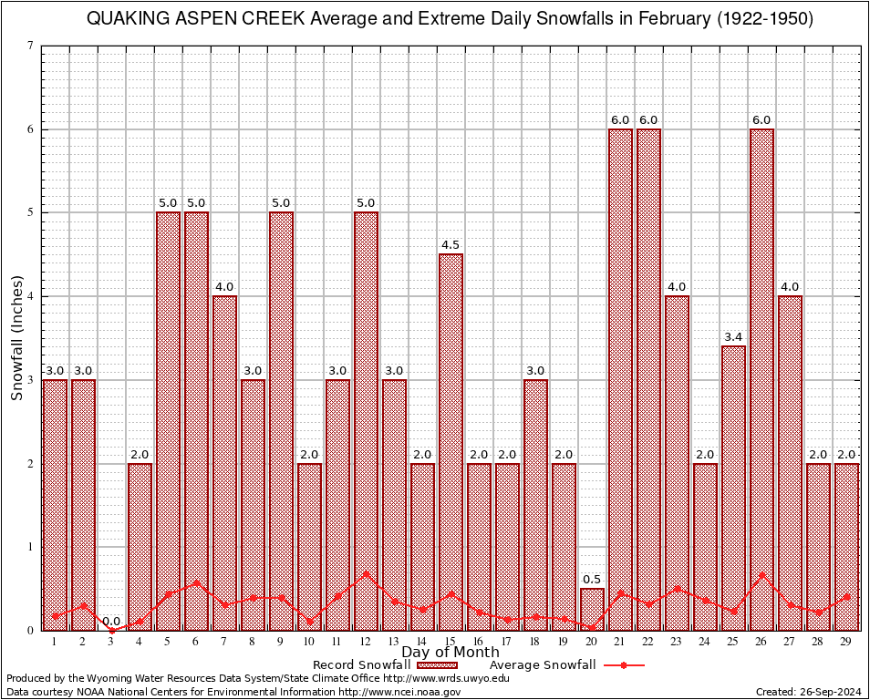 February Average and Extreme Daily Snowfall AMounts (1922-1950)