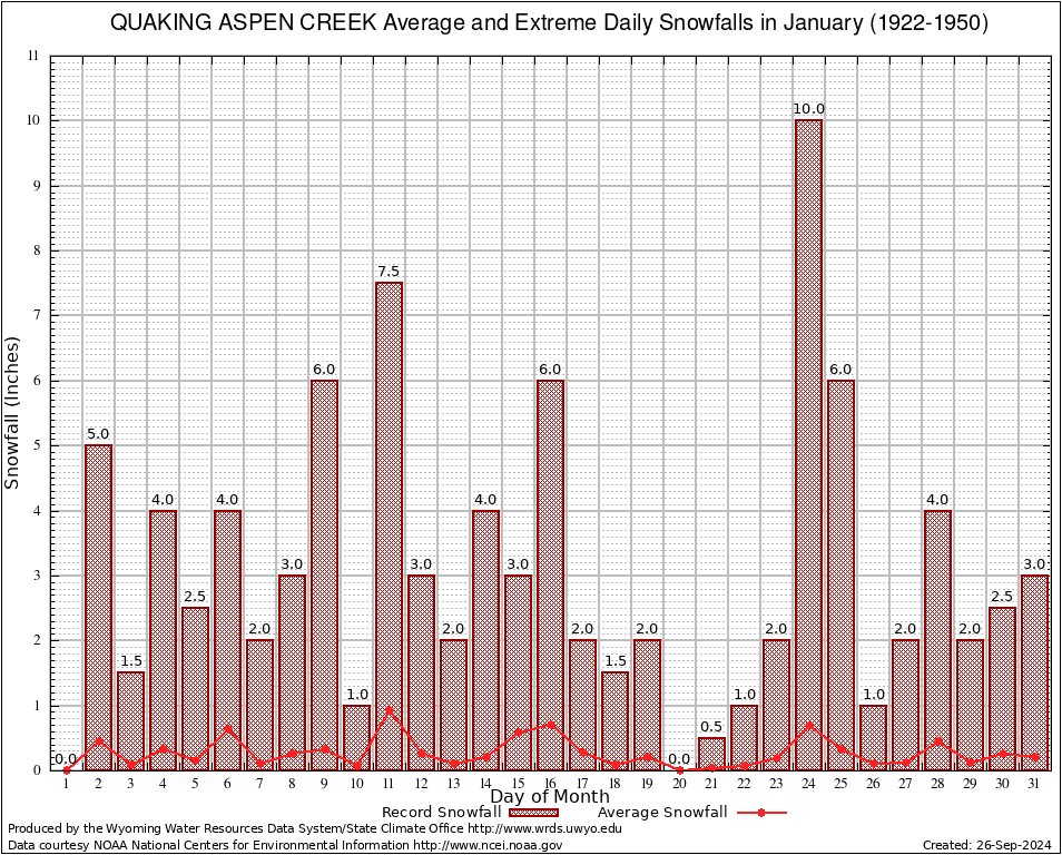 January Average and Extreme Daily Snowfall AMounts (1922-1950)