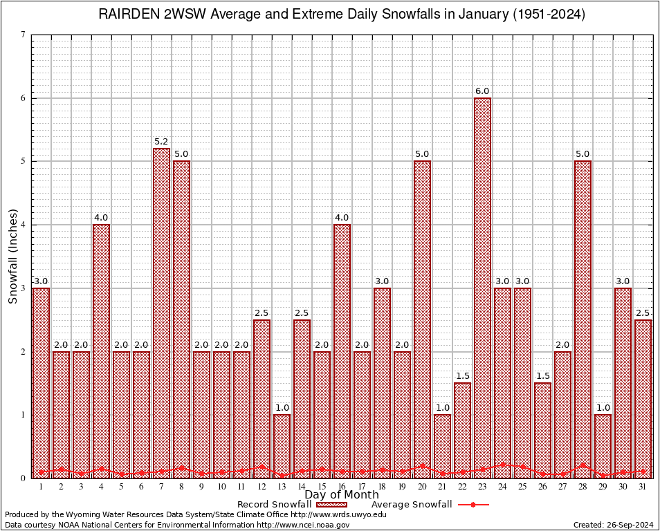 January Average and Extreme Daily Snowfall AMounts (1951-2024)