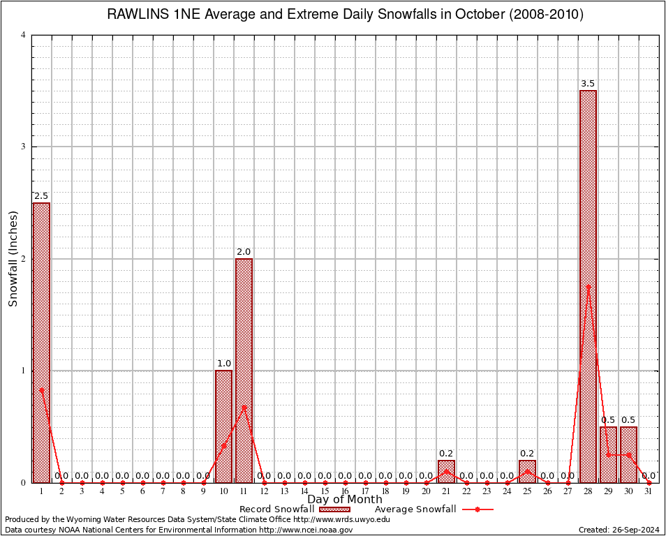 October Average and Extreme Daily Snowfall AMounts (2008-2010)