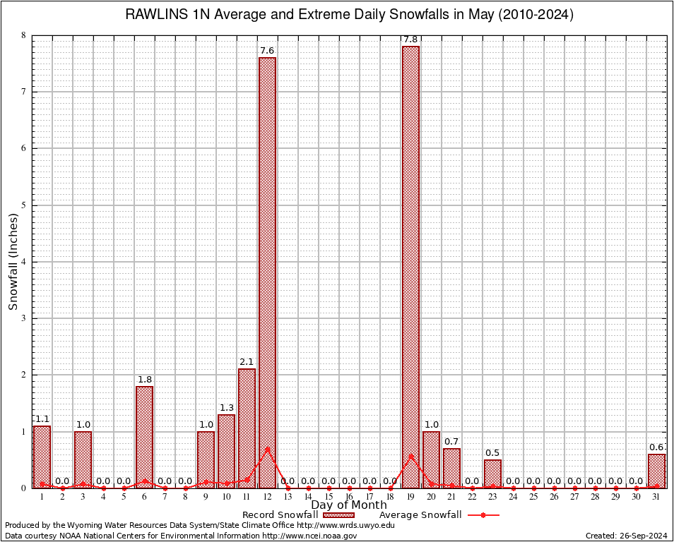 May Average and Extreme Daily Snowfall AMounts (2010-2024)