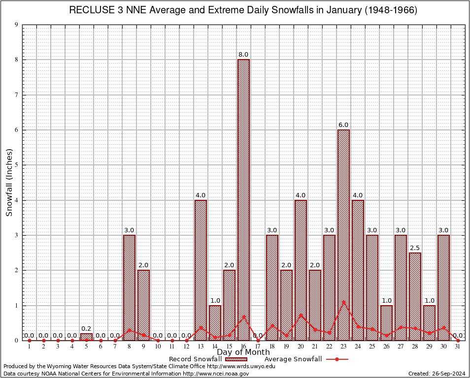 January Average and Extreme Daily Snowfall AMounts (1948-1966)
