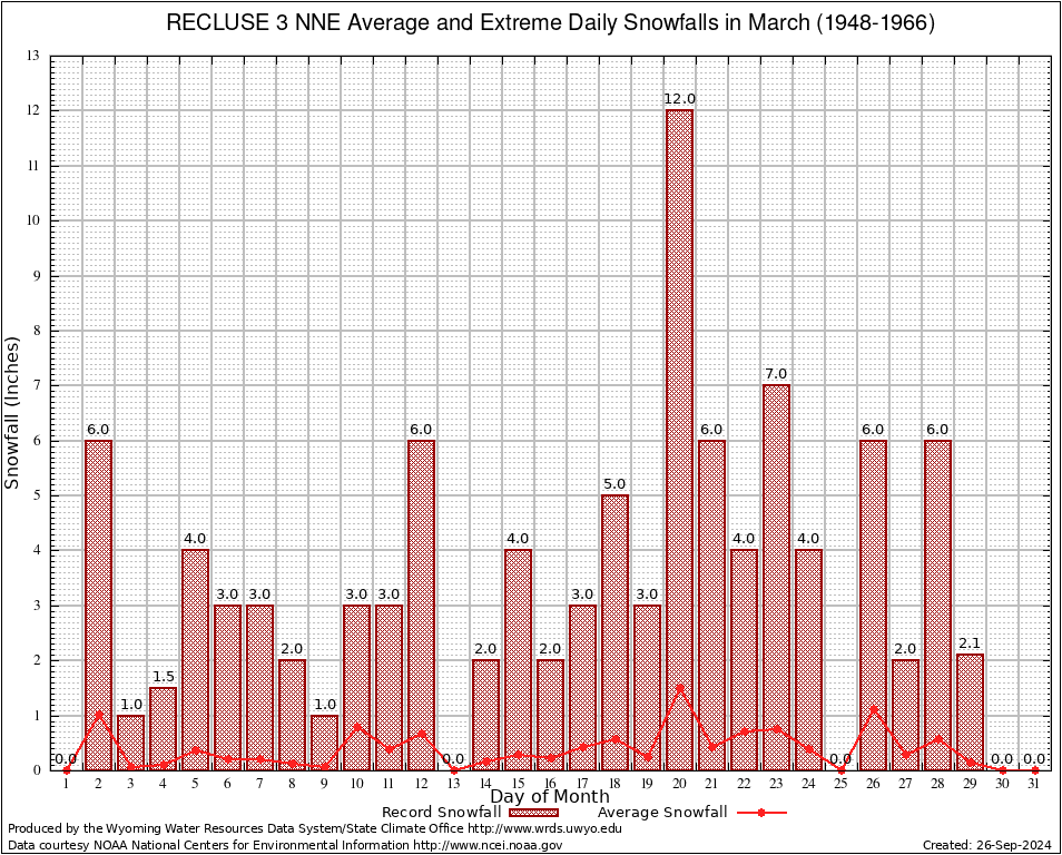 March Average and Extreme Daily Snowfall AMounts (1948-1966)
