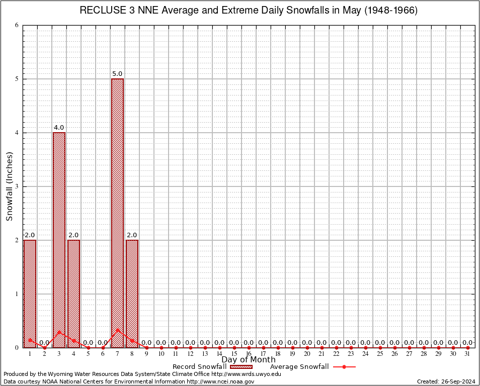 May Average and Extreme Daily Snowfall AMounts (1948-1966)