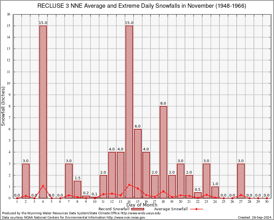 November Average and Extreme Daily Snowfall AMounts (1948-1966)