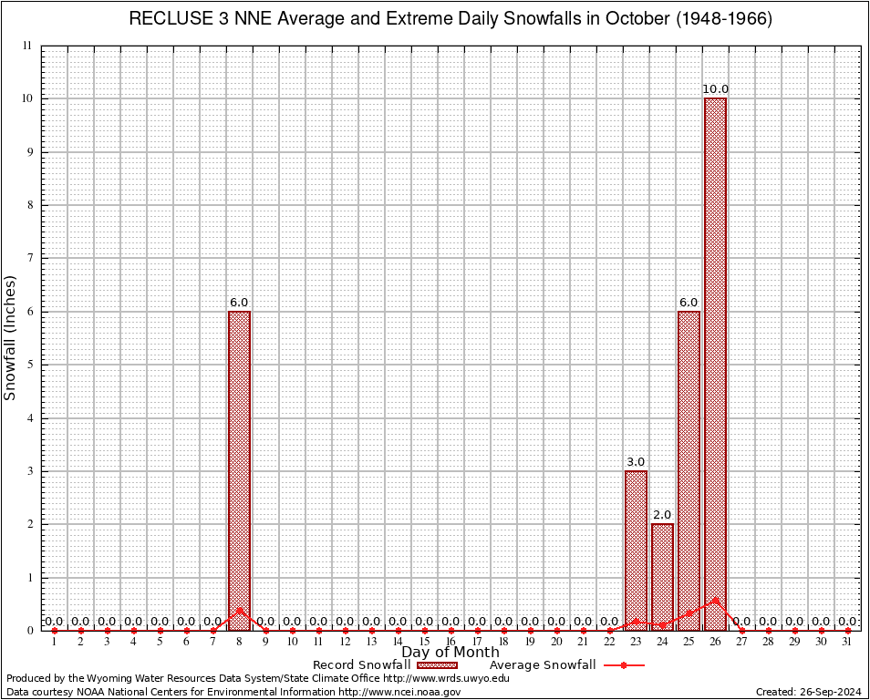 October Average and Extreme Daily Snowfall AMounts (1948-1966)