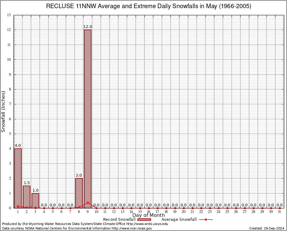 May Average and Extreme Daily Snowfall AMounts (1966-2005)