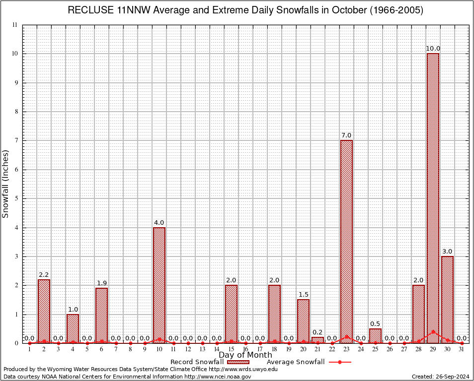 October Average and Extreme Daily Snowfall AMounts (1966-2005)