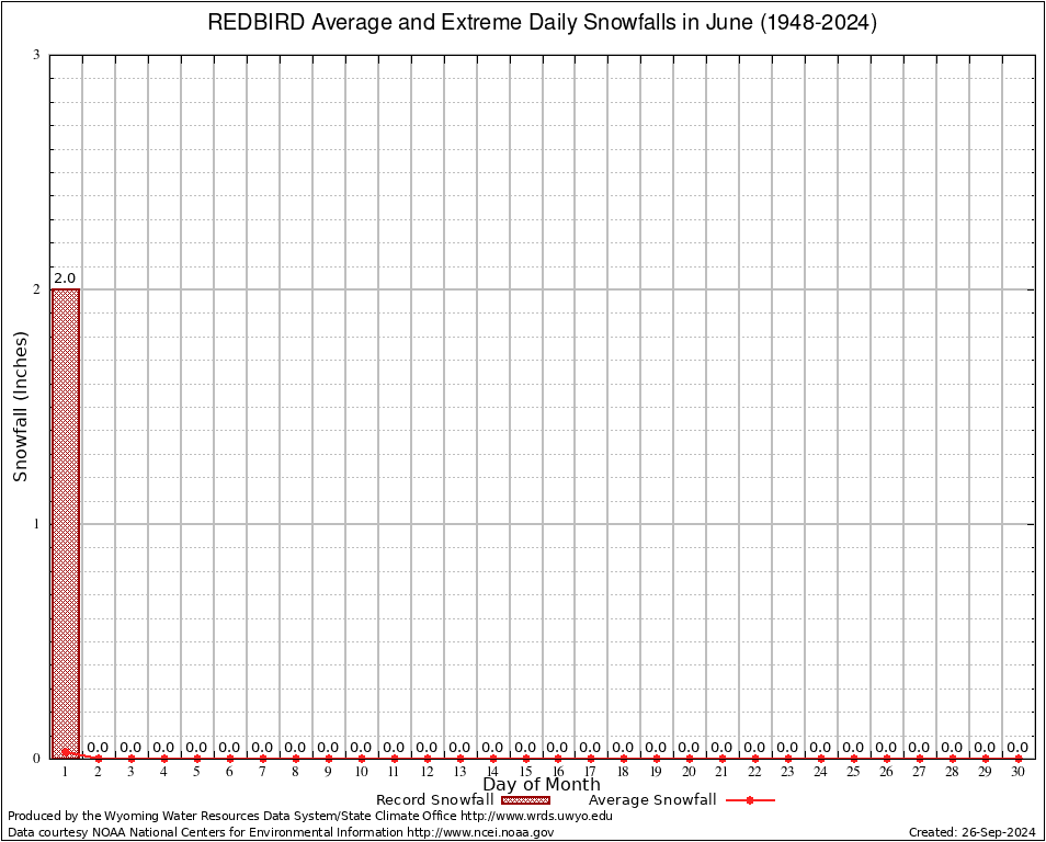 REDBIRD (487555) June Average and Extreme Daily Snowfall AMounts (1948-2024) To index page for REDBIRD