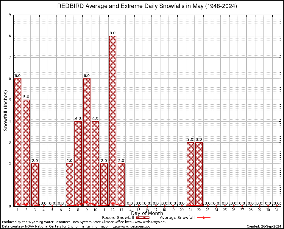 REDBIRD (487555) May Average and Extreme Daily Snowfall AMounts (1948-2024) To index page for REDBIRD