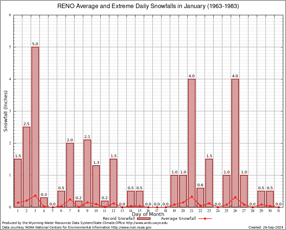 RENO (487683) January Average and Extreme Daily Snowfall AMounts (1963-1983) To index page for RENO