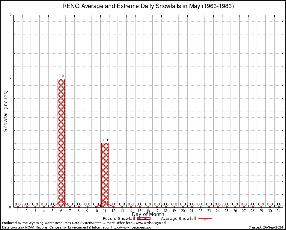 RENO (487683) May Average and Extreme Daily Snowfall AMounts (1963-1983) To index page for RENO