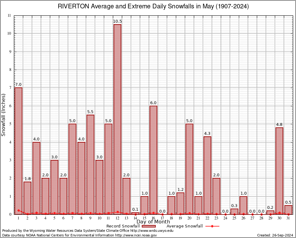 May Average and Extreme Daily Snowfall AMounts (1907-2024)