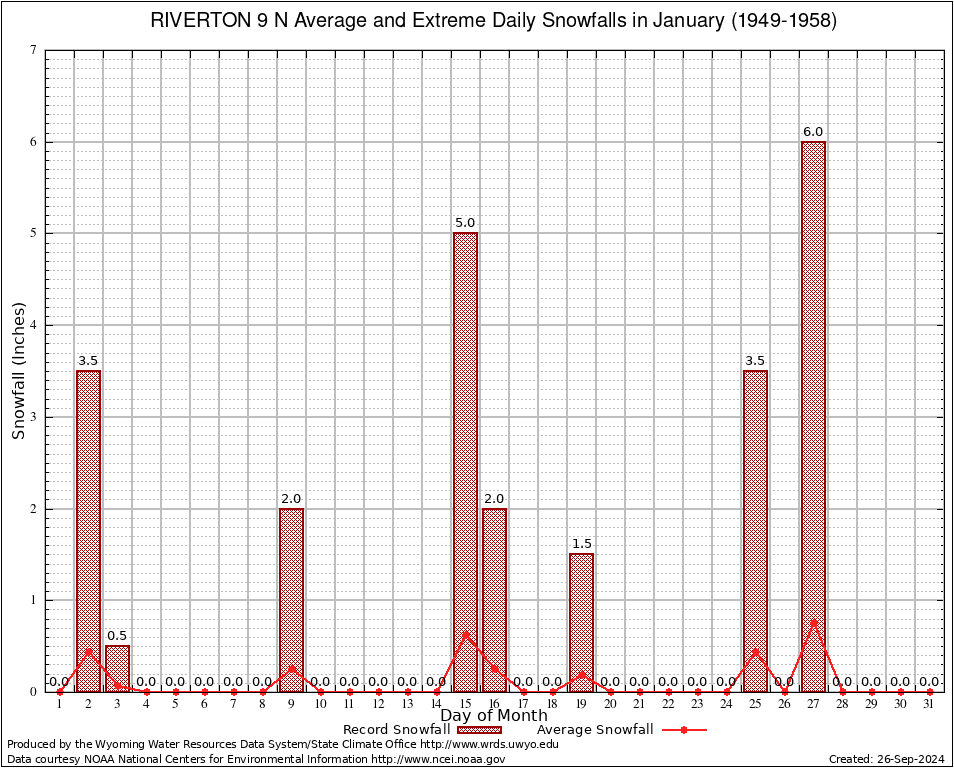 January Average and Extreme Daily Snowfall AMounts (1949-1958)
