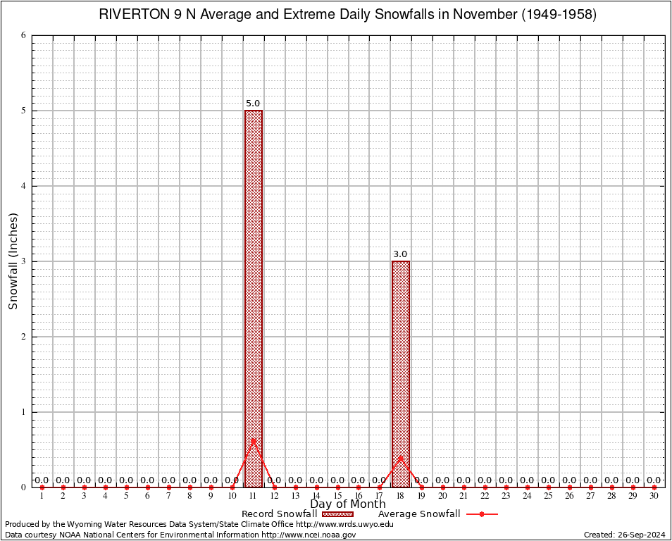 November Average and Extreme Daily Snowfall AMounts (1949-1958)
