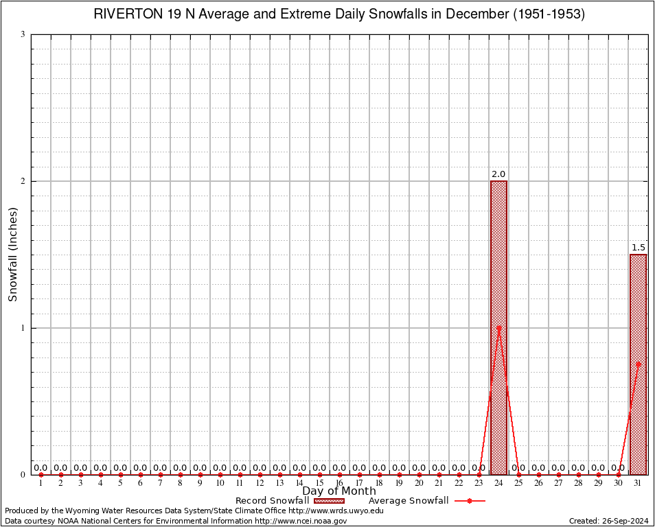 December Average and Extreme Daily Snowfall AMounts (1951-1953)