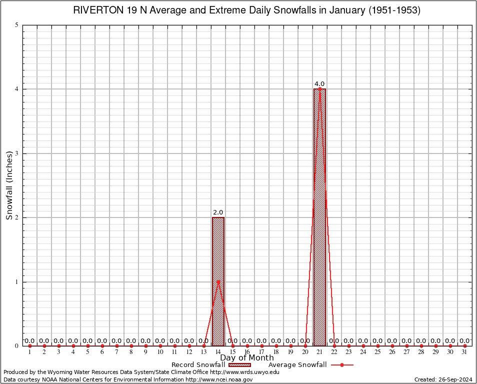 January Average and Extreme Daily Snowfall AMounts (1951-1953)
