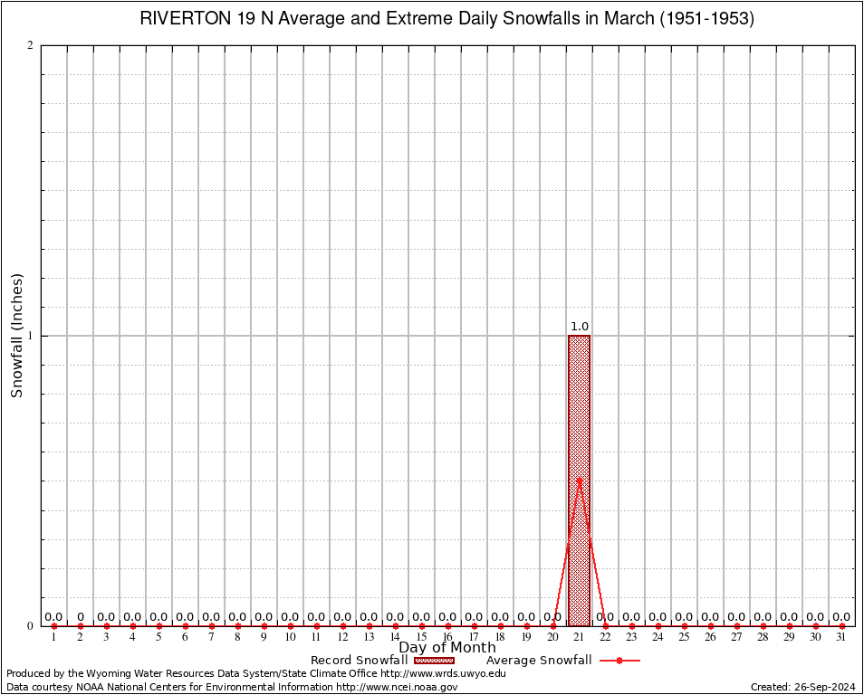 March Average and Extreme Daily Snowfall AMounts (1951-1953)